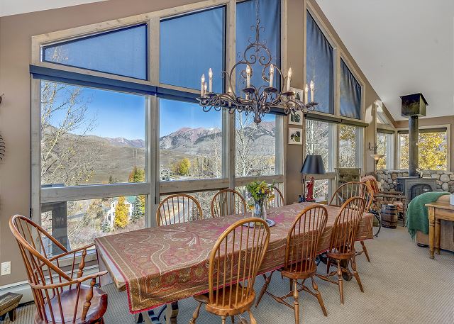 combination tub/shower, jetted tub, shower, toilet, autumn foliage, forests, playground, restaurants, Dining, Books, Games, Clothes Dryer, Fireplace, Garage, Heating, Internet, Linens Provided, Living Room, Parking, Towels Provided, Washing Machine, Wood Stove, Wifi, Free Wifi, Office, Printer, Travel Crib, Coffee Maker, Dishes & Utensils, Dishwasher, Kitchen, Microwave, Oven, Refrigerator, Stove, Toaster, Dining Table, Kitchen Island, Dishes & Utensils for Kids, bird watching, photography, scenic drives, sight seeing, sledding, walking, massage therapist, Mountain, Mountain View, Resort, Ski-In, Balcony, Deck / Patio, Outdoor Grill, Ski & Snowboard, fly fishing, hiking, hunting, mountain biking, mountain climbing, rafting, skiing, tennis, whitewater rafting, children welcome, non smoking only, pets not allowed, wheelchair inaccessible, flexible, not necessary, recommended, Dining Area, Housekeeper Optional, Adventure, Away From It All, Outdoor lighting, Deadbolt lock on entryway, Smoke detectors, Carbon monoxide detector, Fire extinguisher, Clean with disinfectant, No-contact check-in and check-out, High touch surfaces cleaned with disinfectant, Towels and bedding washed in water that's at least 60sC/140sF